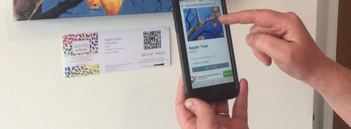 Buying art displayed in your artbnb accommodation couldn’t be easier. If you have a smartphone with QR reader app, simply scan the QR code on the display card alongside the artwork you would like to purchase, and you will be navigated to the online shop page for that piece. You can type the URL directly into your browser too. We accept all major credit and debit cards, as well as PayPal.