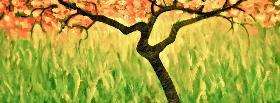 Indoors I work on large scale paper, using acrylic paints, often basing the work on a sketch I have done, or a memory of something I have seen or felt.